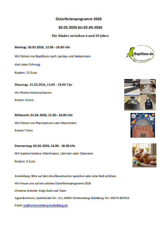 WeiterlesenUnser Ferienprogramm im Februar sorgt an mehreren Tagen für Abwechselung, Kreativität und jede Menge Spaß. Es gibt ruhige und kreative Momente, zum Beispiel beim Gestalten von Gipsmasken, genauso wie gesellige Runden bei Spieleklassikern wie…