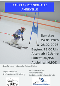 Wir fahren am 24.01. und 28.02.2026 in die Skihalle nach Amnéville. Wenn ihr mindestens 12 Jahre alt seid, Skierfahrung (blaue Piste) habt und mitkommen wollt, dann meldet euch an!